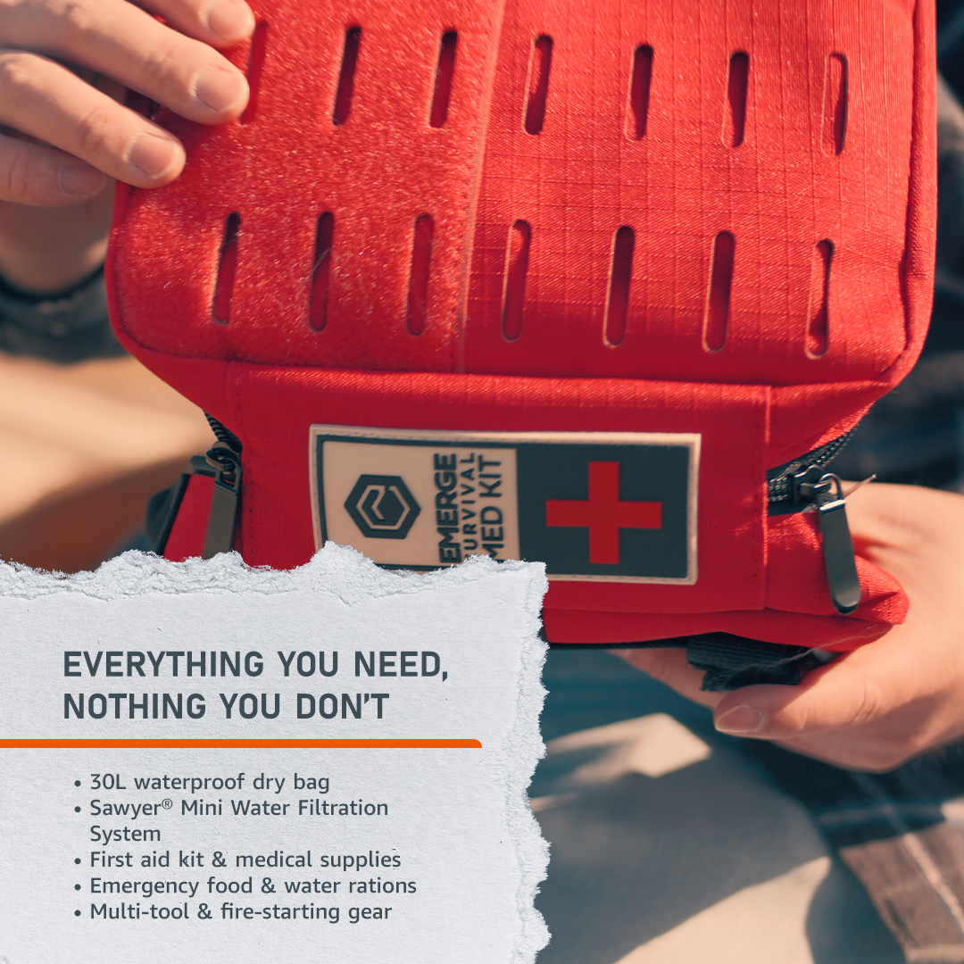 Stranded miles from home? The Emerge Survival Get Home Bag is built for fast action. Lightweight. Compact. Packed with essentials to get you back safely within 24 hours.